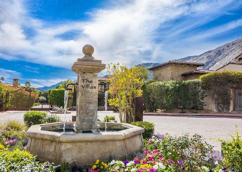 The Villas In Old Palm Springs is a small coveted and gated community of 47 homes embracing the Tuscan architecture of Italy's countryside. Pavered streets, lush landscaping, and the spectacular, calming presence of the San Jacinto Mountain create a distinctive and inviting ambiance throughout the community. Residents enjoy easy access to hiking on scenic local trails. The location also allows for a leisurely walk to the heart of the vibrant Downtown Palm Springs where acclaimed restaurants, unique shopping experiences, Village Fest, and lively social establishments await. This free-standing townhome features a spacious great room with vaulted ceiling, hardwood floors, beautiful fireplace and open to the gourmet kitchen and dining area. The kitchen is equipped with high-end stainless appliances, slab granite countertops, and fine wood cabinetry. French doors lead to a large, wrap-around private courtyard - perfect for relaxing evenings in the private jetted spa or entertaining guests in a serene and refined atmosphere. The first-floor guest bedroom features an en-suite bath and a patio area, providing privacy for guests. Upstairs, the primary suite has two walk-in closets, two balconies and a spacious bathroom with dual vanities, a large soaking tub and separate shower. Another guest bedroom on the upper level includes its own en-suite bath. Enjoy meeting friends and neighbors for a social BBQ, a game of bocce ball, or relaxing around the two heated swimming pools and three spas.