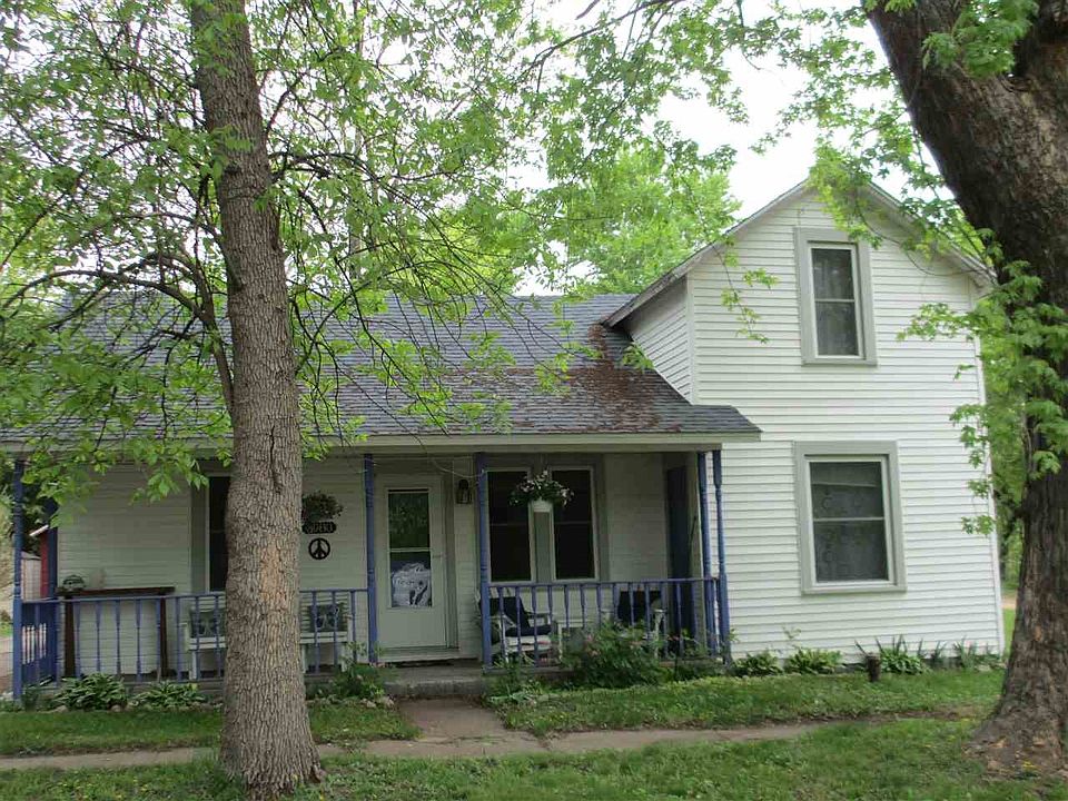 This beautiful front porch is waiting for you to enjoy the peace and quiet of this quaint little town. Nice size fenced in back yard for the kids and dog to play. 2 car detached garage. Walking distance to park. Play some ball. This home has 3 bedrooms, 2 on main level, master bedroom has a nice walk-in closet with another bedroom on the upper level. 1 bath. Seller states Hot water heater in 2014, back gutters, air pressure tank, furnace and windows 2012.