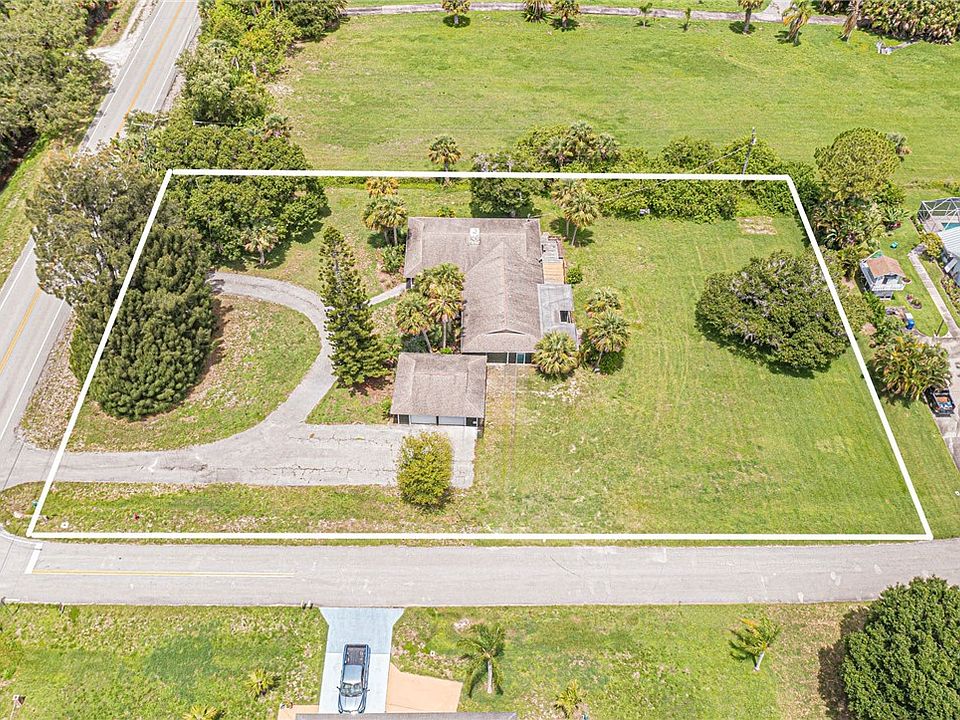 Charming 3/2/2 ranch style home nestled on private 1 acre corner lot in the heart of Vero. NO HOA & plenty of room for ALL THE TOYS & a POOL. Built in 1979, this home features indcld: 2017 roof, 2022 plumbing, 2016 & 2022 HWH, impact windows, just under 2500 sq ft, double sided stone, wood burning fireplace, 2 separate living spaces & oversized eat in kitchen w/wet bar. Large backyard deck perfect for entertaining. Huge circular driveway w/room for RV/boat storage. The possibilities are endless to make this property your own oasis.