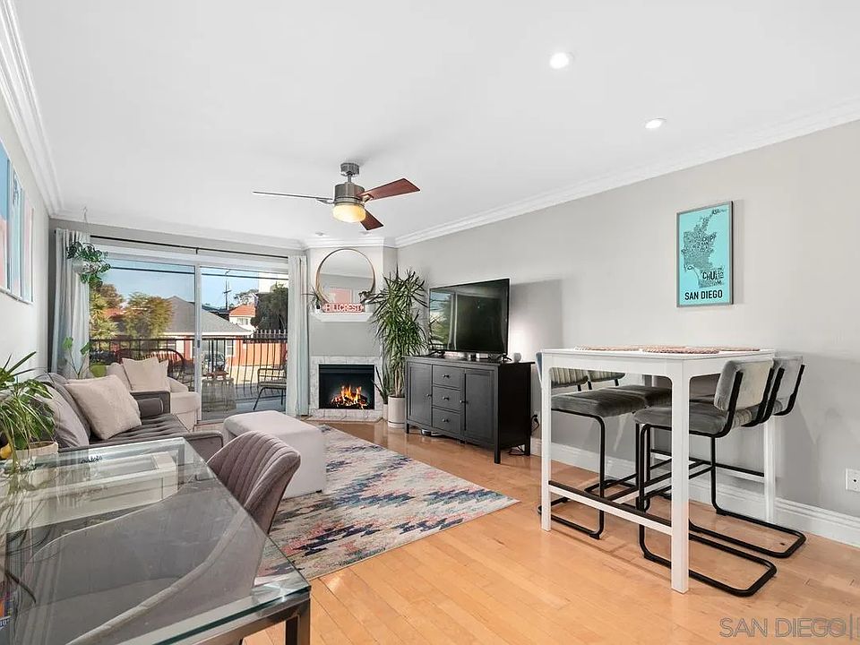 Amazing 1 bedroom, 1 bath updated condo perfectly located in the middle of Hillcrest. This updated residence boasts a thoughtfully designed interior, providing ample space for comfortable living. Enjoy the outdoors on your private balcony and enjoy the indoors with your cozy gas fireplace. The bedroom is ample size to fit a king bed and the bathroom has an oversized vanity and stylish tiled walk-in shower. Plenty of space to add stackable washer/dryer in bathroom, which is already approved by HOA. Secured parking garage with one designated parking spot. The location is perfect to enjoy all of Hillcrest, with Wholefoods across the street, bars & restaurants minutes away, Balboa park down the street and easy access to the freeways. It doesn’t get any better than this.