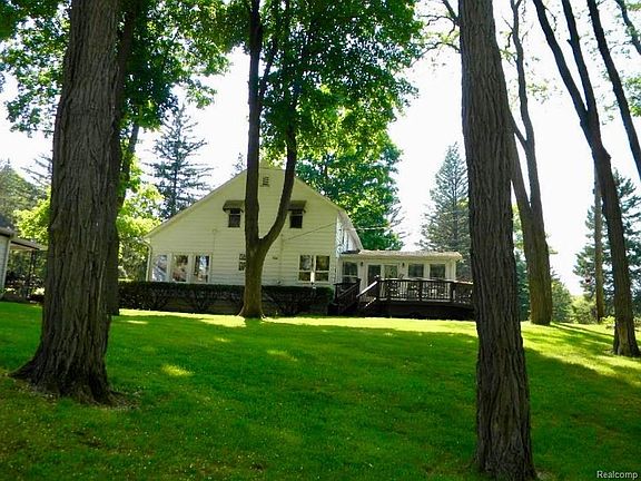 Beautiful setting on 3.68 acre parcel with 2162 sqft 1880 built farmhouse, 2400 sqft ranch with walkout basement, and 2 car detached garage...plus canal front to Commerce Lake! Farmhouse with 4 bdrms, 2 full baths, updated kitchen, 1st flr laundry, windows everywhere to enjoy the natural light & view of beautiful yard! Ranch is 2 apartments with separate entrances (1260 sqft & 1188 sqft) each apt w/2 bdrms, kitchen, living room, own furnace, 1 bath & 1 w/2 baths. Walkout basement under ranch with exterior entrance only, used as storage & workshop. Decks,patios,basketball court,shuffleboard court,inground pool (not opened in many years), lots of parking! Price reflects Farmhouse needs septic tank/field & has some water damage on 1st & 2nd flr. Environmental testing completed for mold. Ranch septic operating. One well for both houses, water tested 2019 - good. Sold AS IS. Please do not walk the property without an appt.
