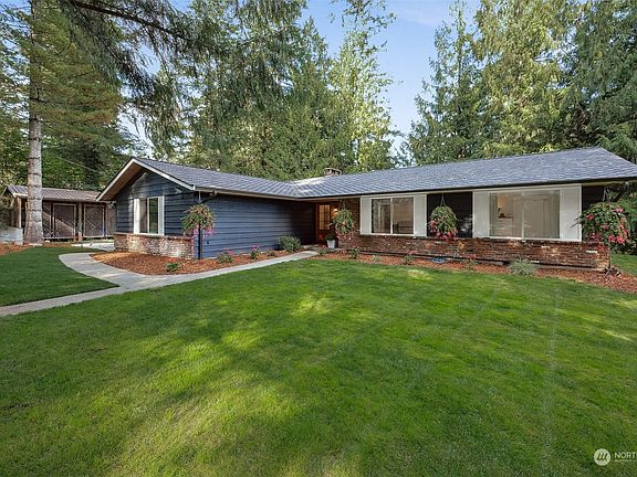 Welcome to your dream home, nestled on a stunning park-like property in Enumclaw! This meticulously maintained home ft. modern upgrades, inc. NEW roof, windows, flooring, & deck. Enjoy a bright, airy layout W/cozy FP W/full-height brick surround. Dining area W/fresh paint! Cook in style W/white shaker cabinets, SS apps, full-height tile bcksplsh, & luxury quartz countertops. The primary suite is a serene retreat W/private deck access, LVP floors, & beautifully designed ¾ bath ft. quartz counters & tile shower! 2 addtl. bdrms & full bath. ALL baths W/heated tile floors! Fully finished bsmt W/extra living space, bdrm & ¾ bath! Expansive deck overlooking breathtaking, fenced grounds W/stream & stunning territorial views.