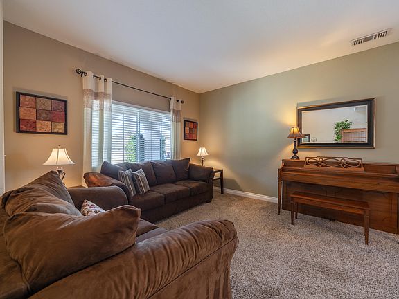 Upstairs is an open floor plan with plenty of light and a view of the hills. The primary bedroom has double door entrance, vaulted ceilings, tub, shower and a large walk-in closet! All bedrooms have window coverings, carpet and nice lighting features. The front & backyards have been well maintained. Schedule your tour today.