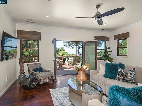 $25K price improvement! This stunning home is now the best value in Hayward! Modern Elegance Meets Peaceful Seclusion in the Hayward Hills! Nestled on a private 3.24-acre lot and surrounded by majestic Oak Trees and Bay views, this beautifully designed home offers the privacy and tranquility you’ve been looking for. Great for entertaining, this home features an open floor plan filled with natural light. The gourmet kitchen is a chef’s delight, equipped with premium Bosch appliances, a 5-burner gas stove, convection double oven, toe-kick lighting, a spacious center island with a second sink, and a built-in wine fridge. Enjoy two luxurious primary suites, one on each level. The upstairs suite boasts stunning Bay views, making every morning feel like a getaway. Step outside onto the newly refinished deck, perfect for family BBQ's, morning coffee, or unwinding under the stars. A Hot Spring spa offers the ultimate relaxation. Additional features include a Sprinkler System, Generac generator, Sonos sound system, two LG flat-screen TVs, a Tankless water heater, 60 amp EV charging outlet, 200 Amp electrical service, an advanced septic system, Weather Station, RH Shelving, and a quiet location down a private lane with no through traffic. Don't miss this one!