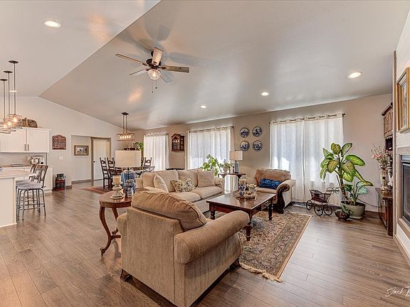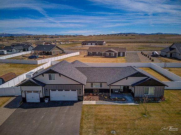 Like new, only better! Not a thing to do but settle in to this lovely home and get ready to enjoy your Montana summer! This property is the epitome of "move in ready": pristine condition; meticulously clean, and beautifully finished inside & out. Single level living with a bonus room above the garage. 1815 sq ft on the main level and 726 up for a total of 2541 sq ft. in modern, neutral finishes. Main level comprises open kitchen/dining/living with pantry, island, gas fireplace, vaulted ceilings; three bedrooms, two baths including primary suite with patio access, walk-in closet, dual vanities & custom tile shower. Upper bonus room serves as a fourth bedroom, rec room, den, office, or multi-purpose space. East-facing patio accessed via glass doors off dining room offers a cool place to unwind on a warm evening, with glimpses of the mountains in the distance and the occasional pronghorn on the hills to the east. The sprawling, lush back yard is entirely fenced in 6' vinyl, irrigated by 6-zone automated wifi UGS, and features perennial gardens including clematis, roses, daisies, lavender, lilies, tulips, and even some sunflowers already peeking through! Attached triple garage is insulated & drywalled, with extra space for a small work bench and a door leading to the back yard. Striking exterior with black accents & corrugated metal gables, blacktop driveway, plenty of parking, and an 8x12 storage shed. Just a 10 minute drive to Canyon Ferry or Hauser Lake, 5 minutes to East Helena Schools, and 15 minutes to the capital city!