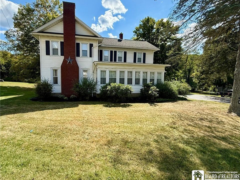 The Hamilton house! With over 3000 ft.², hardwood floors, natural woodwork, beveled glass, brick woodburning fireplace and was formally owned by the Bissell family. Days gone by it was a lumberyard. Enter from the side porch to remove your coat and kick off your shoes. Into the kitchen you’ll find ample cupboard space, a gas stove and a refrigerator, which both stay. Off the back of the house is the primary suite, which also has an entrance from the sun porch and a back porch. There is a wall of windows, a great walk-in closet with a skylight, a bright and sunny bathroom with a corner shower & tile floors. Past the kitchen is the dining room, the formal living room and a den with a half bath. There is also a large front sun porch that is the perfect spot for a lazy afternoon nap. Upstairs, you’ll find four bedrooms all with closets, hardwood floors and completed by a full bathroom. The basement has plenty of room for storage, laundry area, the utilities with a forced air furnace, a gas hot water tank and a two bay utility sink. With 3 acres of property you have room to roam and enjoy. There is a storage shed for your outdoor items, a creek along the back of the property along with an old Lumber/equipment shed. The creek is a publicly stocked trout stream, and Paisley Pond is just a short walk from the home. With vinyl siding, a shingle roof, gutters, central air conditioning, and a blacktop driveway this home has it all. A short drive to Little Valley, Salamanca, Ellicottville, Alleghany State Park, and just a couple of miles from interstate 86 that leads towards Jamestown and Olean. If you’ve always wanted a house with the historic charm, large rooms, tall ceilings this one is for you. The owner has loved this home and has many cherished memories with those they love and is hoping the next owners will continue that tradition.