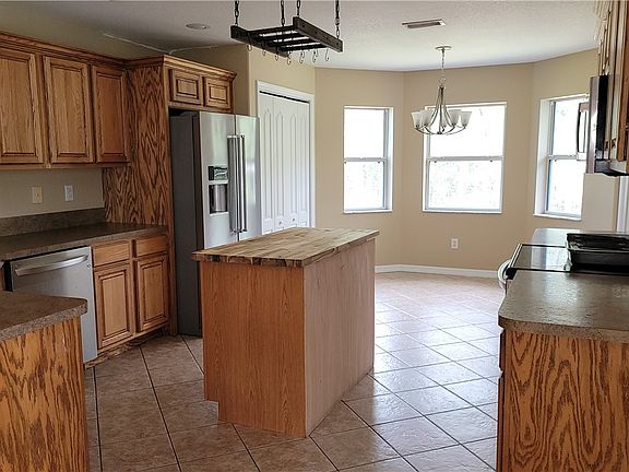 Come take a look at this 4 bedroom, 2 bath, 2 car garage home located in Citrus Springs. This home has freshly painted interior and exterior is in process of being painted now. Home is approximately 1889 sq ft living space. Home has great room, open dining, breakfast bar to eat in kitchen with upgraded stainless steel appliances (convection oven, large capacity french door refrigerator), butcher block island. Home has split floor plan, master bedroom on one side 3 guest bedrooms on the other side. Home has inside utility room and large screened porch with triple sliding glass door. Great home for entertaining or just if you want a little elbow room. $2000/month