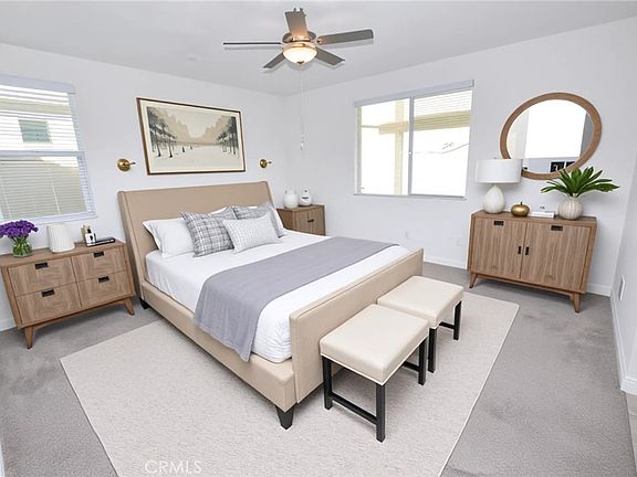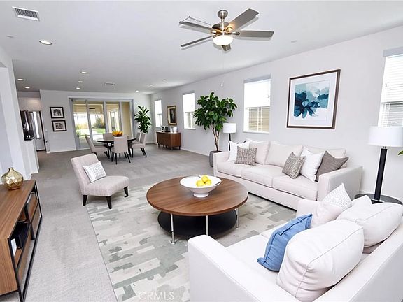 Turnkey home located on a cul-de-sac in the highly desireable, gated 55+ Community of Somersbend with paid for solar and a huge fully landscaped low-maintenance yard. The home features a great room a family room and dining area which flow seamlessly into the kitchen as well as 3 bedrooms and 2.5 bathrooms and a huge alumnawood patio with fireplace and multiple fans. The kitchen is a chef’s delight with a large quartz center island and a walk-in pantry and Stainless steel appliances including a fridge. The master suite features a generously sized walk-in closet and a spa-like bathroom with an oversized walk-in shower as well as a linen closet. Two additional bedrooms and a full bath provide comfortable space for guests or a home office. The laundry room has a sink as well as plenty of additional storage space as well as a counter for folding clothes. The backyard retreat with an extensive aluminum patio cover featuring an outdoor gas fireplace and fans also features low-maintenance landscaping with artificial turf and concrete walkways. There is also a convenient storage shed. Esplanade has exclusive resort-style amenities, including a clubhouse, pool, fitness center, and more. All this, just minutes from Temecula Wine Country, shopping, and dining. This home perfectly blends comfort, convenience, and community.