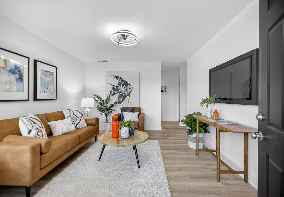 Open floor planWindow blindsLuxury vinyl plank floorsBeautiful kitchenCeiling fans