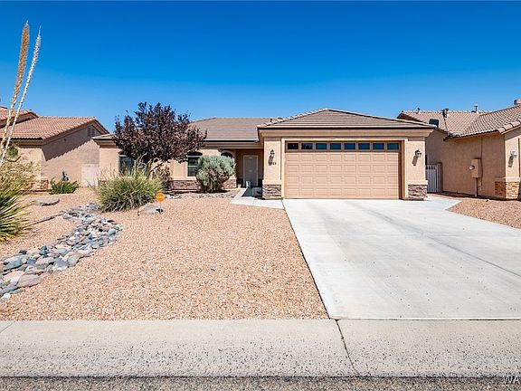 This clean and move-in ready home offers many of features, starting with its exterior. The front showcases stone veneer and a beautifully landscaped yard with an irrigation system, rock landscaping, and mature shrubs. The backyard, artificial grass, enclosed by a private block wall, also features irrigation, and a large covered patio, perfect for enjoying Arizona sunsets and un-obstructed mountain views for 50 miles. The 2-car garage includes a new door opener and epoxy flooring. Inside, the spacious layout has vaulted ceilings, central heating and cooling, window coverings and ceiling fans throughout. The kitchen is equipped with stainless steel appliances, a gas range, a breakfast bar, pantry, and plenty of cabinetry. Refrigerator and water softener will stay with the home! The living room includes a rock fireplace, and the indoor laundry room offers added convenience. Additional interior highlights include walk-in closets, a walk-in shower, and modern finishes.