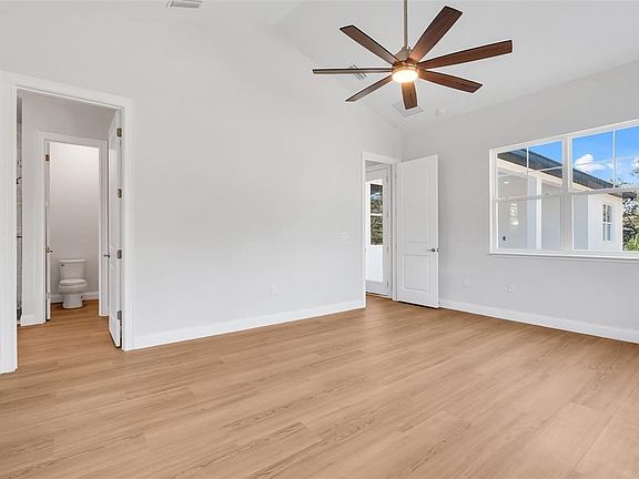 Looking to put down some roots and enjoy a little space? This brand-new 4-bedroom, 2.5-bath home in the Royal Trails community sits on over an acre and is ready to grow with you for years to come. Step through the French doors into a bright, open living area that flows right into the kitchen and dining space. You’ll notice the light tan luxury vinyl plank flooring that runs throughout the home, giving it a warm and welcoming feel. The kitchen features granite countertops, soft-close cabinets, a tiled backsplash, separate cooktop and oven, and an oversized pantry for plenty of room for all your essentials. The split floor plan gives privacy to the primary suite, which sits on the back right side of the home and includes a large walk-in closet and bathroom with double vanity, granite counters, soaking tub, and walk-in shower. The three guest bedrooms sit on the other side of the home, each with built-in closets and a shared bath featuring a double vanity and tub/shower combo. Out back, enjoy peaceful views from the covered porch with no rear neighbors thanks to the pond. The home was thoughtfully designed with a future pool in mind, complete with a half bath and side door for easy access. The inside laundry room is ready for your design and finishing touches. Royal Trails offers a community park, clubhouse, and private access to Lake Norris. It’s a quiet country setting with plenty of space to breathe, just waiting for you to call it home.