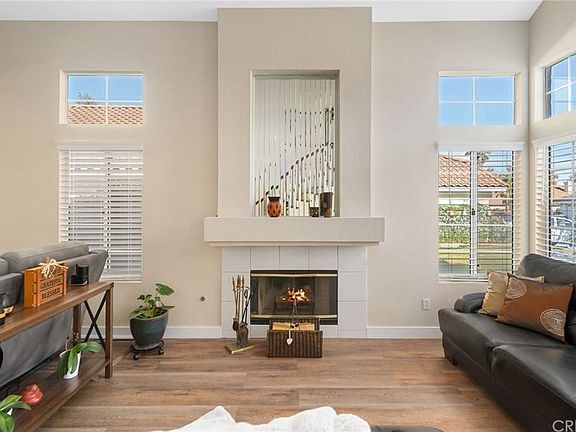 Beautiful 2 Story Rancho Vista Updated & Upgraded Home shows like a model! Enter into the formal living & dining room with vaulted ceilings, gorgeous laminate wood flooring, fresh interior paint & amazing wrought iron stair railings, the living room has a fireplace & the dining room has direct access to the kitchen. This light & bright space is perfect for entertaining, enjoying quiet time, watching movies & more. The Updated kitchen is open to the family room (currently used as a formal dining room), new Shaker styled white cabinets, grey toned granite counters with glass tile back splash, stainless steel appliances & breakfast bar, great view of large back yard as well as an open floorplan flowing right into the family room. The spacious family room has oversized tile flooring, guest bathroom downstairs as well as full laundry room with washing machine & dryer. The upstairs primary bedroom has high ceilings, spacious closets, new light fixtures/fan & attached primary bathroom. The bathroom has a large bathtub/shower as well as a massive vanity with dual sinks, a water closet (toilet) & large linen closet. Both the secondary bedrooms are spacious with closets, new ceiling fans & share a secondary bathroom. The massive back yard has a covered patio, BBQ with storage, patio extends the length of the house & has block wall fencing. There is an attached, direct access 3 car garage with storage cabinets & work bench. The entire home has been updated with new flooring, paint, fixtures, hardware & more. Truly better than a model home.