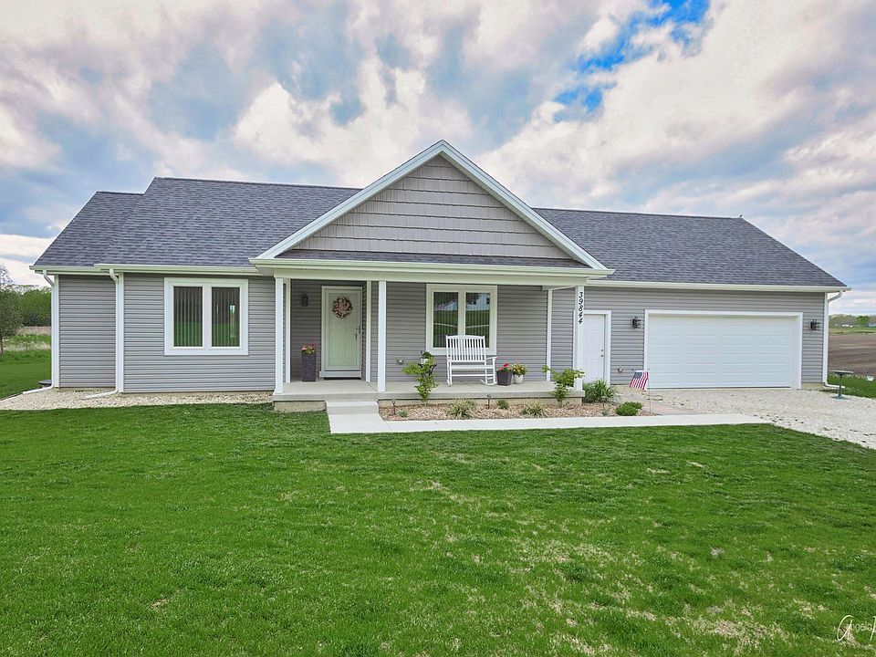 Adorable, Newly Constructed, Farmhouse Style Ranch on 12.96 Acres. Are you looking for a new start in the country with room to grow Newly constructed in 2019, this home features: vaulted ceilings, luxury vinyl plank flooring, farmhouse style lighting, black stainless appliances, walk-in closets in both bedrooms and full basement with 8 ft. ceiling. Great curb appeal, professionally landscaped and hardscaped. Enjoy this wonderful neighborhood that is surrounded by forest preserves, biking & hiking trails, parks, recreation and great fishing lakes right around the corner! Less than 15 minutes from I-94, Metra, shopping and entertainment. There is a lot of possibilities here. Take a look and make this your little piece of Americana and Dream Home Today!