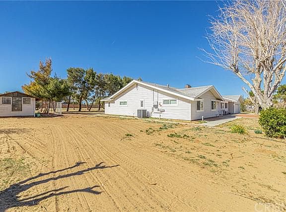 Welcome to Your very own Ranch Home, manicured 2.5 acres tranquil setting YET within walking distance to the Mall and quick drive to freeway and shopping, this 1 story custom built home has 4 bedrooms, 2 and 1/2 baths, 2 fireplaces, formal living and dining, family room, granite counters in the kitchen, indoor laundry room, 2 car attached garage 2 car detached garage plus 2 car carport, enclosed patio room, out buildings perfect for pets, play house, or She Shed, block wall fencing on 3 sides of this property with 2 electric front gate on both ends of the circular concrete driveway, the frontage road is paved and not a through street , this home has been updated with can lighting painted in and out, textured ''popcorn' ceilings have been removed, relaxing front gazebo and water fountain, in summer month front yard is covered in our beautiful Poppies, Best of ALL this Home has PAID SOLAR!! Natural Gas and Water Stocks, This is your opportunity to own property yet close to all service
