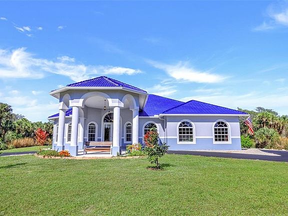 Enter this prestigious estate by driving in on the grand loop, top-coated driveway. The loop driveway leads to the porte-cochere that gives you a covering when exiting vehicles and heading towards the front door. This stunning open concept home is packed with upgrades, including reverse osmosis for water purification and impact windows and doors. The gourmet kitchen has brand new appliances including newly installed refrigerator, gas cooktop with hood, and dishwasher. The kitchen also includes a built-in mini fridge and under cabinet lighting. The huge, private, and landscaped lot is perfect for any lifestyle with a 46’ x 18’ RV cover (with electrical hookup) and a screened in pool. The saltwater heated pool is upgraded with a water feature and solar shower. This address is a short distance to shopping, dining, and the Big Corkscrew Island Regional Park that is coming soon.