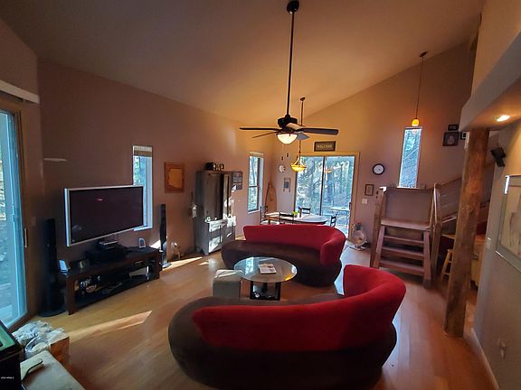 USDA 100% FINANCING ELIGIBLE!!! That's right, this cabin qualifies for USDA 100% financing!!! This newer (2005) 2 story cabin is located in the tall pines, with amazing views, just off Walker Rd past Lynx Lake. Enjoy your cool, summer paradise, only 1.5 hours from Phx. The seasonal creek is a nice additional feature & it's only approx 1/4 mile from the paved road. YEAR ROUND ACCESS!! The county plows Sheldon to Blue John. During heavy snow falls, you might need a truck but a small car can usually be sufficient to reach the home. The exterior has stucco with a metal roof. Inside, the master is upstairs with full bath with a bedroom downstairs with a 1/2 bath. There is a nice little walkout balcony that sets outside the master. The wood burning stove keeps it nice and toasty on cold nights.