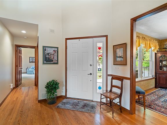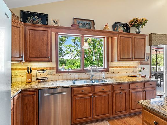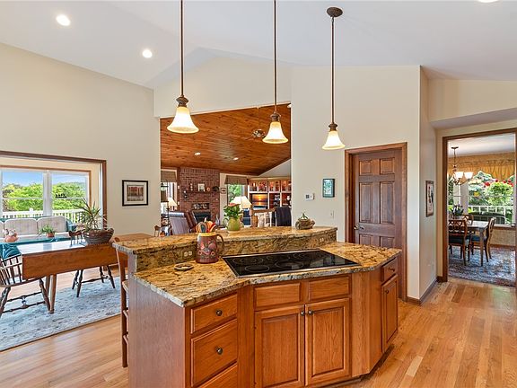 Serene, Scenic and Privacy Surround this Masterpiece. Exquisite 3 bedroom 2 1/2 bath home offers a Private Owners Suite, Spacious Kitchen with Granite Counter Tops, perfect for entertaining. Vaulted, Ceilings throughout the First Floor with Natural Tongued and Groove Ceilings in the Great Room, Cozy Gas Fireplace, Gorgeous Sunroom, Formal Dining area are just a few Amenities offered on the main living floor. Downstairs is another large living room with 2 generous sized bedrooms and a full, newly updated bath. Loads of storage, as well, in the mechanical area. Pride of Ownership Shines Throughout. High Efficiency, Geothermal Systems, Current monthly Budget is just $141.00 a Month!