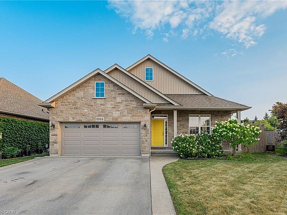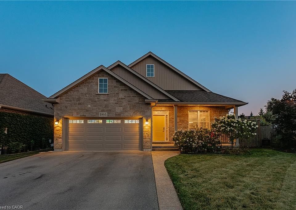 Welcome to 3985 Lower Coach Road, a beautifully maintained open-concept bungalow set on a rare oversized reverse pie-shaped lot in one of Stevensville’s most desirable neighbourhoods. Built in 2017, this 4-bedroom, 3-bathroom home blends modern finishes with a functional layout suited to a wide range of lifestyles. The main floor features engineered hardwood, custom California shutters, a built-in speaker system, and an open-concept living and dining area. The kitchen offers granite countertops, a large 8-foot island with a built-in wine rack, a granite sink, 24-inch tile floors, and a spacious pantry. French doors lead to a full-length deck (2019) overlooking a deep, fully fenced backyard with no rear neighbours. This rare lot provides exceptional privacy, mature perennial gardens, two large sheds, and a double side gate ideal for trailer or boat access. The main floor includes two bedrooms, a second full 4-piece bathroom, and convenient main-floor laundry. The primary suite offers a private 3-piece ensuite and a walk-in closet. An attached 2-car insulated garage with an insulated automatic door and a double-wide driveway allows parking for up to six vehicles. The fully finished basement expands the living space with two additional large bedrooms, a 3-piece bathroom, and a generous rec room with a cozy gas fireplace. A large storage room adds practicality. With thoughtful details throughout, a private backyard setting, and a well-designed layout, this home is move-in ready and ideal for families, downsizers, or anyone looking for space and quality in Stevensville.