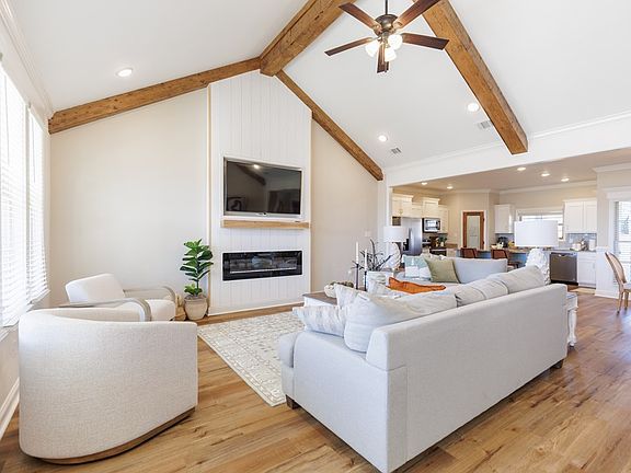 This exquisite four-bedroom, three-bath home captivates from the moment you arrive. Step inside to a grand living room crowned with vaulted ceilings and accented by handsome exposed wood beams. Sunlight dances across the open space At the heart of the home lies a chef's dream kitchen, artfully designed with gleaming granite countertops, a generous island for casual dining, and an apron-front stainless steel sink that blends form and function with effortless grace. The master suite is a true private sanctuary—a serene haven where luxury meets tranquility. Two custom-designed closets offer abundant space, while the en suite bath enchants with floor-to-ceiling marble ceramic tile, a wraparound shower, that invites indulgent relaxation. And let's not forget the hot tub in the backyard, complete with a beautifully landscaped setting. Every element whispers elegance, creating a spa-like retreat within your own home.