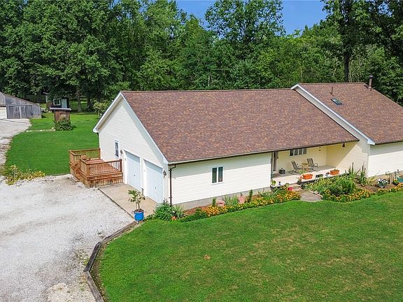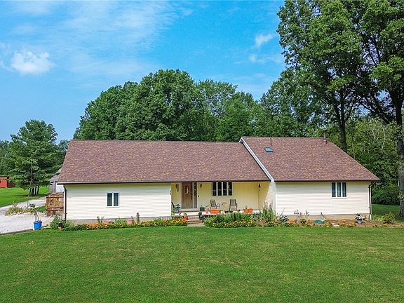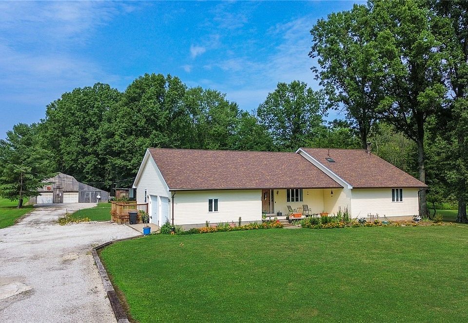 Welcome to your new home! This stunning, ranch-style residence in Lordstown offers the perfect blend of comfort, space, and functionality. Thoughtfully designed by the current owners, who have lived here since it was built in 1994, the open floor plan creates a seamless flow between the spacious living area with vaulted ceilings and the eat-in kitchen with a skylight, making it perfect for entertaining. This home boasts 3 generously sized bedrooms and a full bathroom on the first floor, with a skylight. The primary bedroom offers an additional half bathroom, en suite with a skylight, as well as a large walk-in closet. The second bedroom also features a walk-in closet, while the third has two large closets. A laundry room is conveniently located on the first floor, with a functional toilet and utility sink for added convenience. Downstairs, you'll find additional living space to use to your liking! With a second kitchen setup and another full bathroom, this could be converted into a full guest suite, or simply used for entertaining guests! There is a wood burning stove in the basement, perfect for gathering around during those cold winter nights. Outside, the expansive 3.26-acre lot is partially wooded, offering a picturesque setting. The property includes a 2-car attached garage, as well as a 40' x 32' detached garage, accommodating up to 4 vehicles, with a second story for storage, plus an attached horse stall and shed. Additionally, there's a charming chicken coop on the property, as well as a variety of fruit trees and berry bushes! This home is ideal for those seeking a blend of rural charm and modern conveniences. Don’t miss this opportunity to own a piece of tranquility in Lordstown. Updates include: new roof and skylights (2023), new HWT (2021), HVAC 2017, new dishwasher (2023), new GFCI outlets (2024), and converted from septic to public water and sewer. Finally, the sellers are offering a one year 2-10 home warranty for buyer's peace of mind!