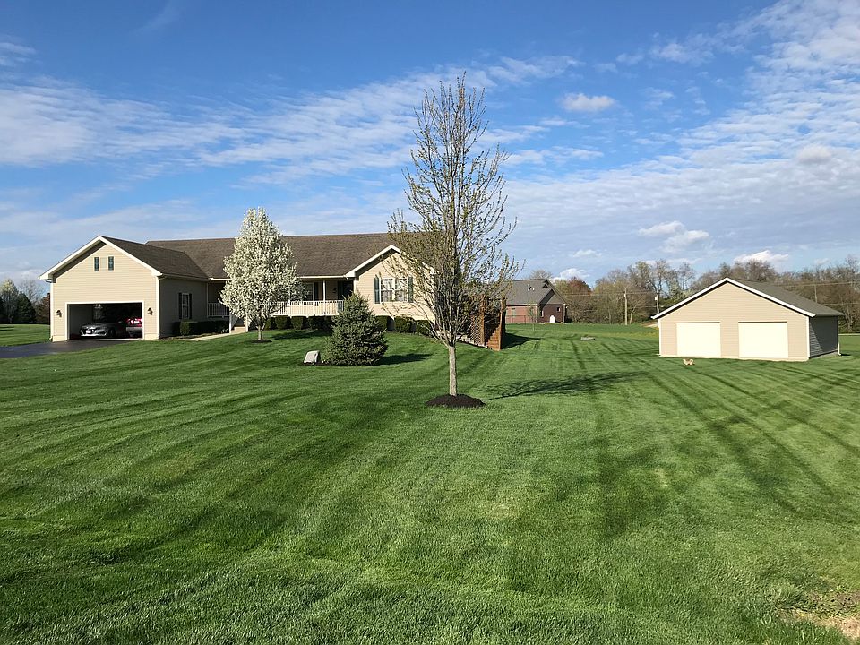 Beautiful custom built Estep Brothers ranch home. Extremely well maintained in the quiet Windy Ridge subdivision. First floor master suite with vaulted ceiling, walk in-closet, master bathroom with jacuzzi tub plus additional shower. Two additional bedrooms (possibility of 5 total) and 2 baths on the main floor. Large family room with vaulted ceiling, wood burning fireplace and French doors opening to a large beautiful second story deck. A formal dining room, large living room, plus eating area with great view from the bay window. Spacious kitchen with plenty of storage and counter space. Laundry room with utility sink and storage closet. Amazing home in immaculate move-in condition. Full basement that is partially finished with walk-out that provides the possibility of two additional bedrooms and two large living areas. For a personal showing or more information, please call or text Bill Sapp at 937-307-0647 Realtor protected. Additional details: 2,120 sq ft on main floor, plus additional 1,210 sq ft finished in the basement for a total of 3,330 sq ft 3 bedrooms on main floor – 2 addition in walkout basement Lot Size: 1.15 Acres Oversized 2 car attached garage with additional 28 x 30 detached garage / workshop Finished basement with double door walkout to patio. Large deck and front porch Built in 1999 Heat pump with central air Northeastern SD - Elementary: Rolling Hills - Middle: Northridge - High: Kenton Ridge