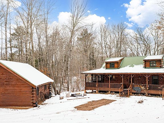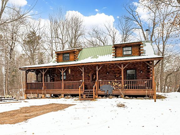 Fantastic cabin style home on 15 acres located in Hinckley! Your main floor features a beautiful kitchen with updated stainless steel appliances, your living and dining room, as well as two bedrooms and a bathroom! Upper level features a beautiful lofts connected by a catwalk, creating a very open floorplan. Walk down to the basement and you’ll find a recently finished basement, with an additional bedroom, which could also be utilized as a second family room as well as an additional bathroom in the basement that features heated floors! Find a “hidden” storage room behind the bookshelf. To top it off, you have a beautiful porch in the front, side, and rear of the house! Make this yours today! Seller is selling the property “as is”. Quick close possible.