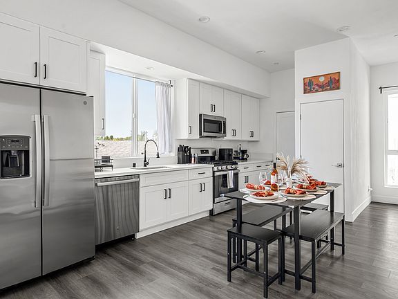 Elegant finishes: quartz countertops, stainless steel appliances, and modern cabinetry
