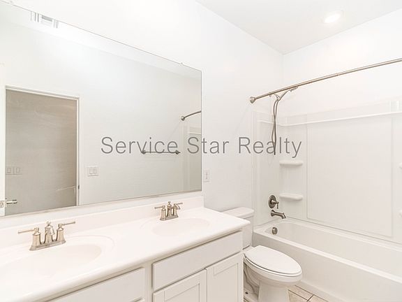 Enjoy a private split floor plan with a spacious Primary Suite, complete with a dual-sink vanity, walk-in shower, and massive walk-in closet. Three additional bedrooms are located off the foyer, with a convenient hall bath featuring a dual-sink vanity and tub/shower combo. A huge indoor laundry room with built-in shelving adds even more functionality.