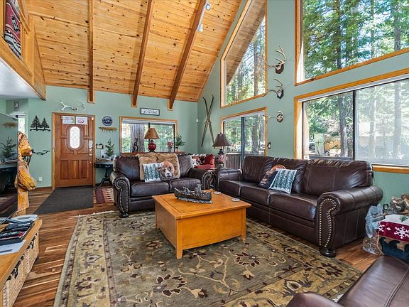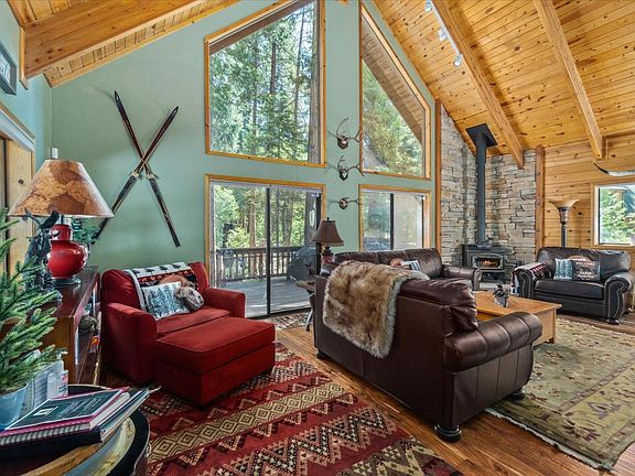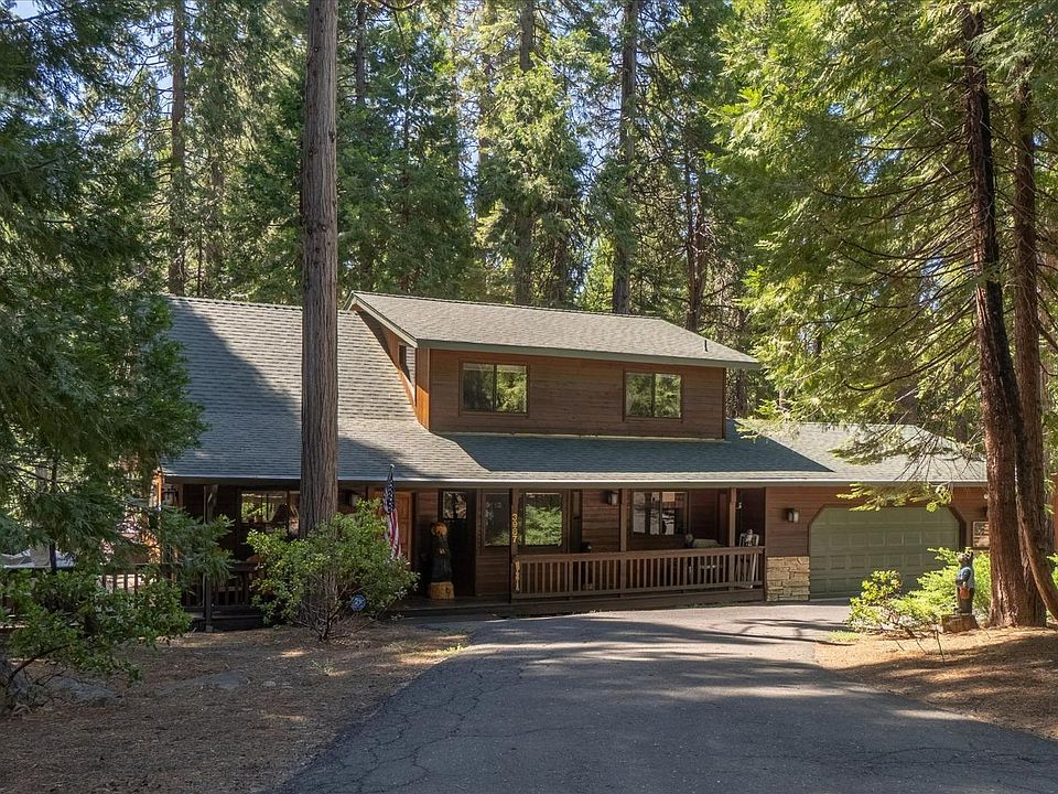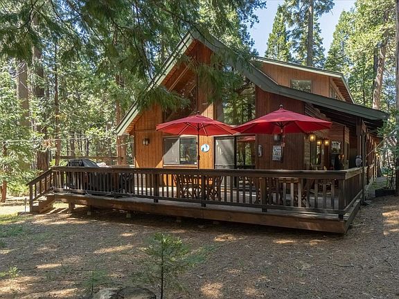 Experience mountain living at its finest in this well-maintained, fully furnished chalet in Big Trees Village. This charming home features vaulted ceilings and large windows that fill the space with natural light. The open floor plan includes a cozy Lopi wood stove and central heat controlled by a Wi-Fi thermostat. The main level offers a primary bedroom, while upstairs you'll find two additional bedrooms, a full bath, office, game room or extra sleeping area. The expansive wraparound deck is perfect for entertaining and comes equipped with a Blackstone grill and Traeger smoker. Enjoy outdoor activities in the backyard with a fire pit, swing set, and a new hot tub. Additional features include an automatic backup generator and a steel bear box for added security. Garage is currently being used as a game room. Conveniently located near Big Trees State Park, Bear Valley Ski Resort, and Lake Alpine, this chalet provides easy access to outdoor recreation. With a roof approximately three years old and a deck about four years old, this turnkey property is ready for you to move in and start enjoying your mountain retreat.