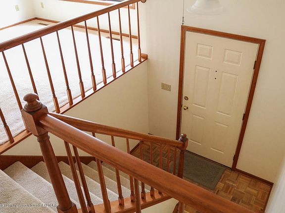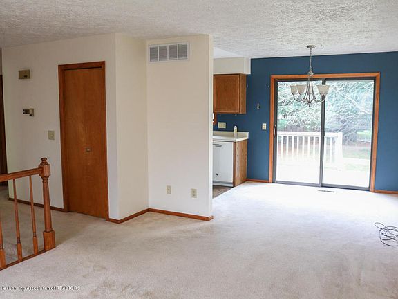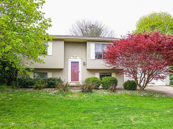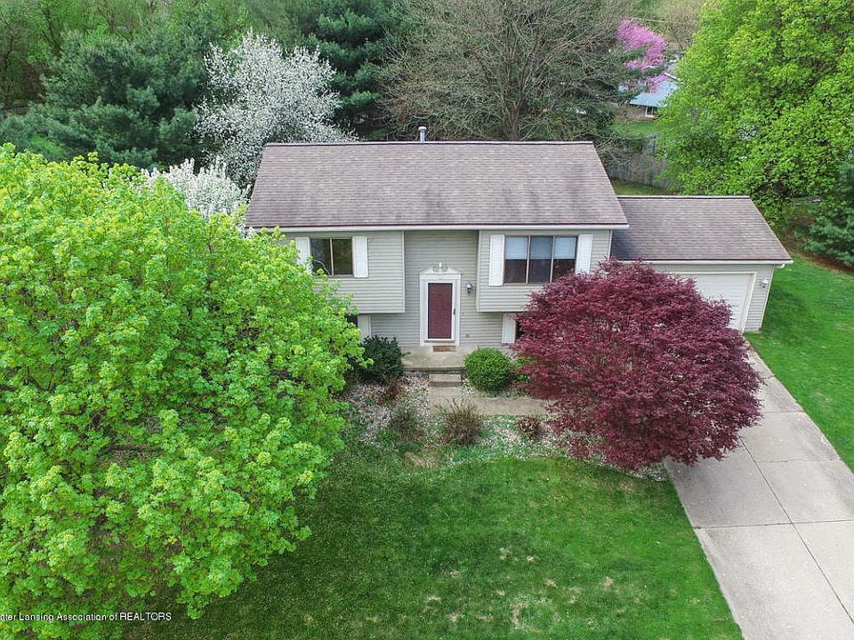 Welcome to 3987 Ridgemoor! This 3 bed, 2 full bath bi-level home is located inside Hearthside Acres in Holt. Upstairs, you'll find the master bedroom and second bedroom along with the kitchen and one full bath. Spacious open floor plan with a fully finished lower level, two-car attached garage and new carpet throughout most of the home. The lower level has another full bath, third bedroom, large rec room and walkout patio. The retaining wall, patio, and rear deck have all been structurally rebuilt. Aluminum siding, asphalt shingles, central air, brand new furnace and hot water heater installed in March 2017. Extra large pie shaped lot with many beautiful mature trees!