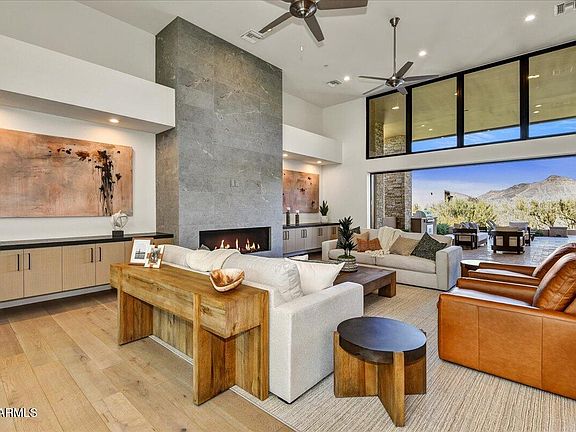 Privacy with breathtaking views, This home faces North and West, offering beautiful sunsets and mountain views. Walls of glass flood the spacious great room with natural light and connect you to the outdoors. The high-end kitchen features Sub-Zero refrigerator's and Wolf appliances, perfect for everyday living and entertaining. Wood floors throughout, tumbled travertine patio, Step outside to a covered and expansive outdoor patio areas with fireplace, a Pebble Tec pool / spa with an in-floor cleaning system and a built in BBQ. The front and rear are fully landscaped with auto-drip system to all pants and ready to enjoy, a furniture package is available to make moving in simple and seamless......
