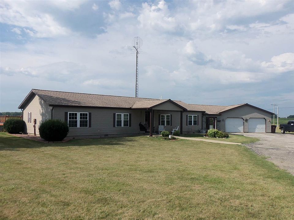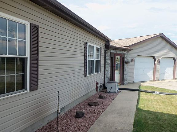 Very nice manufactured home with good space, nice 27x27 stick built add-on used as family room, game room, entertainment room all in one, also a spacious laundry room added on which connects the home to the attached two car garage, circular blacktop driveway gives access from Wallick Rd. or 400 South, the master bedroom has a spacious master bath with garden tub. The eat-in kitchen has a walk in pantry which could be converted back into the laundry room, there is also a separate dining room with built-in hutch. The spacious living room has built in bookcase and also French doors which lead to the wood deck and above ground pool. NIPSCO average is $58.00, REMC average is $150.00, Wildblue from REMC is the internet provider. Range/oven, refrigerator, washer & dryer are negotiable. The range can be gas or electric.