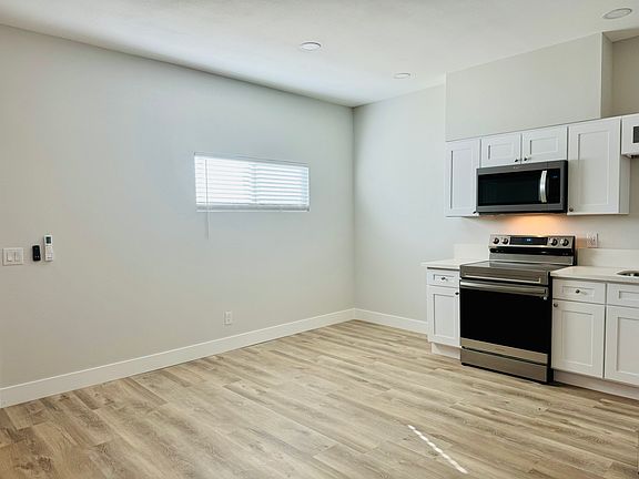 Welcome to this recently renovated 1 bedroom 1 bathroom apartment! Features include: vinyl flooring throughout, quartz countertops, recessed lighting, mini split air system, in unit stackable clothes washer/dryer, stainless steel kitchen applianes including microwave, refridgerator and stove, tankless water heater, and ceiling fans in all rooms. Includes off street parking. Owner pays water, trash, gas and gardener. Close to shopping, schools and freeway access. Owner pays for water, trash, gas and gardener