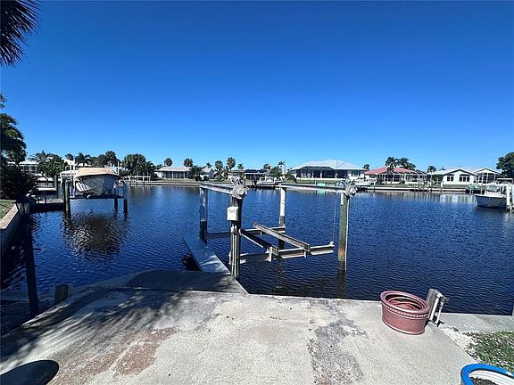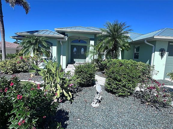 Imagine morning coffee or evening conversation on the lanai overlooking the lagoon! Maybe you are up early headed out on your boat for a 10 min ride to the harbor for some of the worlds greatest fishing, or maybe you are headed to downtown Punta Gorda by bicycle, walk or car to visit one of three farmer/craft markets on the weekend shopping, restaurants or a concert at the event center. This 3 bedroom 2 bath 3 CAR GARAGE home has an incredible location for the Punta Gorda lifestyle with sea wall maintained by the city, dock and boat lift. The home is made for entertaining…the kitchen has been beautifully redesigned including a six burner gas cooktop, solid wood soft close Kraft Maid cabinets and marvelous granite countertops that have distinctive one of a kind veining throughout- the kitchen opens to the family room all viewing the lagoon with a bank of windows for a light and bright space. The vibe continues with an expansive covered lanai overlooking looking the pool and waterway; the grill is piped into propane- no more lugging tanks! Your spacious master bedroom suite includes a stunning black and white marble grained tile shower that is a masterpiece in design. The second bath is also thoughtfully reimagined and boasts a dramatic pop of color/grain in the tile and counter. Outside is a tropical paradise with native plants and magnificent desert roses. A 3 car garage provides ample space for cars and toys with a circular dive to provide access from both Bal Harbor and Belle. The home is hurricane protected with impact windows and roll down lanai protection screen along with a 2023 Standing seam metal roof (not all metal roofs are the same). Come visit your dream and live the life you imagined!