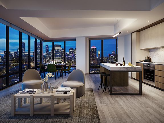 - Exterior features: 6-inch Wide Plank Flooring, Baths with Polished Chrome Hansgrohe Fixtures, Blackout and Sheer Thermal Shades, Bosch and Blomberg Stainless Steel Appliances, Caeserstone Counters in Bathrooms, Cardio Machines Including Peloton Bikes, Co-Working Space for Work From Home, Conference Rooms with Screen Sharing Capabilities, Creators Suite, Customizable Elfa Closet Organization, Dual Vanity Bathrooms, Expansive Floor-to-Ceiling Windows *, Game Room, Hotel Style Entryway for Easy Rideshare Pickup, Keyless Entry, Kitchen Islands *, Lutron Caseta Lighting, Package Receiving, Pet Spa and Run Area, Resort-Style Fitness Facility, Rooftop Green Terrace for Gaming and Lounging, Smart Digital Thermostats, Soft-Close Cabinetry with Custom Metal Details, TV Lounge, Technogym SKILLRUN Equipment, View Type: Skyline Terrace Deck with Boston Views, Wine Refrigerators *, Yoga Studio