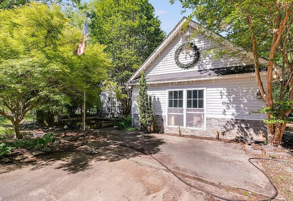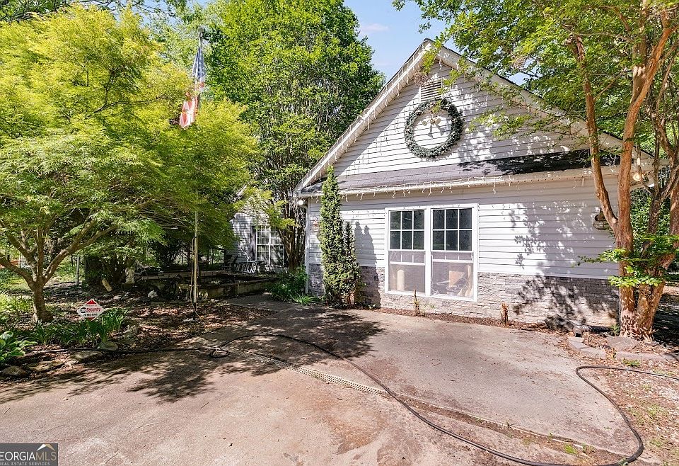 Are you in your Homesteading Era?? This is the place for you!! So much potential in this property if you're willing to roll your sleeves up and get to work! At one time this was a true working mini farm, so all the infrastructure is there. 5 acres of beautiful property with fenced pastures, a pond, chicken coop and run, greenhouse, storage buildings (one was once used as a horse stall), a shop with power and water, and a very well-built 3 bedroom/2 bath home! The setting is amazing with beautiful established landscaping (crepe myrtles, hostas, azaleas, and Japanese maples just to name a few) and 2 tranquil Koi ponds near the house. As soon as you walk in, you'll notice the tall vaulted ceilings in the entryway and dining room as well as the living room, a large kitchen with tons of storage, large bedrooms and bathrooms, a bonus space (formerly a garage), and a sunroom/porch with a hot tub! HVAC was replaced in 2021, some updates have been done, but the rest is for you to make your own. Easy commute to Atlanta- convenient location, yet private. Price reflects condition!