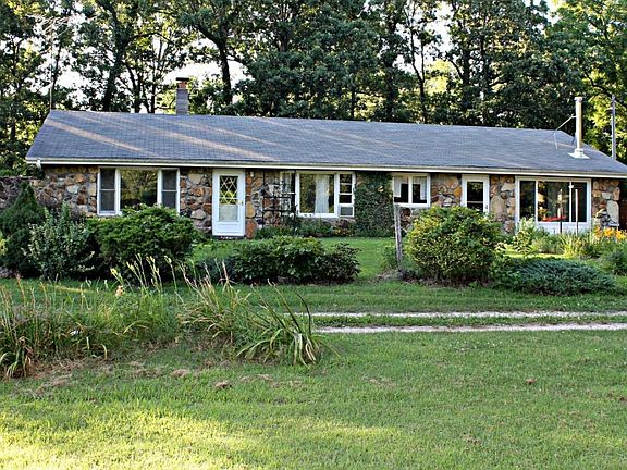 Cute Earth Berm home with stone front in beautiful country setting. 2-bedroom 1-bath with a large living room and bonus room. Large yard with 2 barns and a 2-car detached garage. This home is surrounded by woods for privacy. 19 acres, just enough land to make for great hunting or to enjoy the great outdoors.