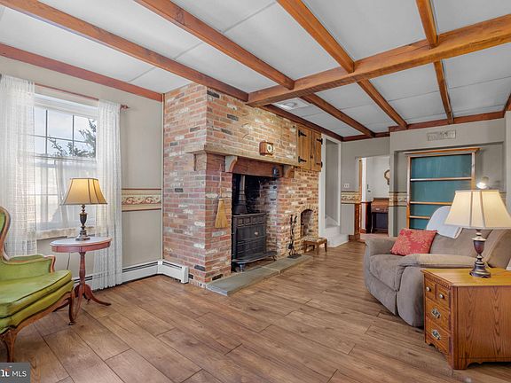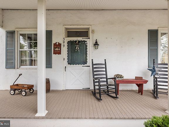 Welcome to 399 E Paletown Road, a charming 1870’s farmhouse that combines rustic appeal with modern comforts. As you step across the front porch into the inviting living room, you’ll admire the stunning brick fireplace with a wood-burning stove, newer flooring, and exposed wood beams. The adjoining dining room is the perfect setting for entertaining guests or hosting holiday gatherings. To the right, a cozy den or office space provides a quiet retreat for work or study. To the left, the country kitchen boasts solid hardwood cabinets, paired with ample counter space and updated appliances that make cooking and meal prep a breeze. The large sliding door offers a view of the sprawling deck outside, allowing for an easy transition to outdoor dining surrounded by nature. A laundry closet and a half bath conveniently round out the first floor. Upstairs, you'll find four generously sized bedrooms, each offering large closets and natural light. The primary suite, with its en-suite bathroom with a tile stall shower, provides privacy and comfort. The other three bedrooms share a full hall bath, complete with a tub shower. The curved wooden staircase leads up to the unfinished attic space, offering a blank canvas for your creative vision. Step outside to the enclosed back porch, a perfect space to unwind and enjoy the outdoors year-round, whether it's sipping morning coffee or enjoying the sunset. This lush 1.6-acre private lot boasts an above-ground pool, an expansive brick patio, manicured garden beds, and so much more. The detached four-car garage barn is a standout feature, offering so much more than just a place to park your vehicles. With two levels, there's ample storage space and a workshop area for DIY projects, hobbies, or crafts. Assigned to Quakertown Community School District, the home is just minutes from shopping, restaurants, parks, Lake Nockamixon, and commuter routes. This is an opportunity you don't want to miss. Call to schedule your private showing today!