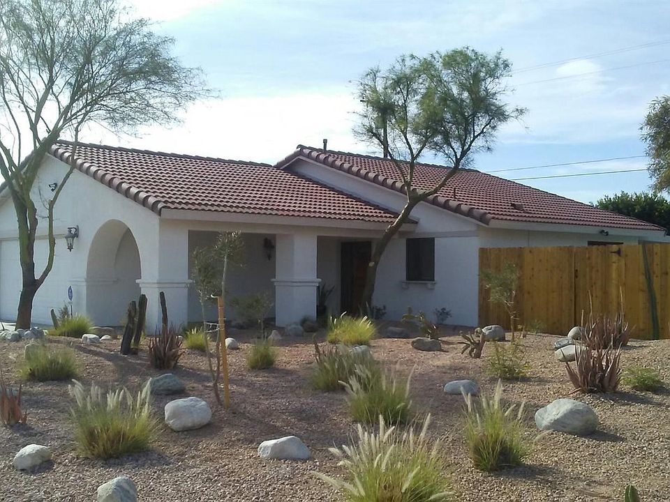 WOW! Updated home on large lot with views and pool and on fee land for under $400,000. New tile throughout. Freshly painted inside and outside. New master bath with glass panel walk-in shower. Light and bright with newer, energy efficient windows and doors. Full size front load washer dryer and all appliances included. Sliding doors and new shutters from both bedrooms onto spacious patios. Huge patio cover with skylights provides outdoor entertaining space. Attached two car garage with storage. Picturesque Mountain views from low-maintenance, landscaped yard with new fence and irrigation system. Refinished pool with newer filter and pump. Across from Miralon home site. Extended home warranty transfers to buyers. Great buy on fee land. Owner financing available.