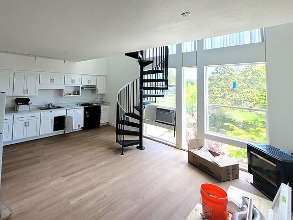 This bright 2 Bedroom, 1 3/4 Bath unit is located in Downtown Blaine, with easy access to the Peace Arch border crossing and I-5. The entire building has gone through a major remodel with new paint, flooring and fixtures through out; as well as the exterior is in the process of being freshly painted. The unit enters into the open kitchen and living room with vaulted ceilings and two stories of large windows. The kitchen includes gas range, refrigerator and dishwasher. The luxury vinyl plank flooring through out and the gas fireplace in the living room give the space a warm and inviting atmosphere. The main floor also incudes the Primary bedroom with walk in closet and a full bath with in-unit Washer and Dryer. As you ascend the spiral staircase you will find the second lofted Bedroom with attached 3/4 Bath and walk in closet.