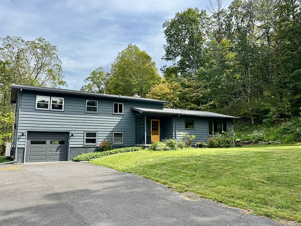 Only 15 minutes from Downtown Hudson, you can enjoy upscale restaurants, boutique and specialty shops, along with entertainment and actives. A mid-century home set on three private acres, offering clean architectural lines, open living spaces and plenty of windows to connect the indoors with nature. The property enjoys distant Hudson River views, mature trees, and a serene setting. The house is fully renovated with a large open kitchen/dining area, large living room, separate family room with wood burning fireplace, and an attached garage. Newer appliances, mechanicals, and bathrooms adds to the homes appeal. Easy access to Catskill, Hudson and Athens along with the convenience of the Hudson Amtrak Station. 3 miles from exit 21 on the New York State Thruway (I-87), and 40 minutes to Hunter and Wyndham Ski Resorts.