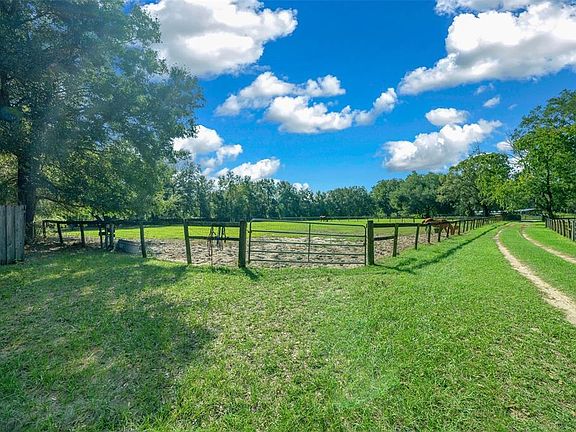 Horse lovers dream property. Bring your horses and settle in at this cute cottage in the country on 7 acres, not far from Ocala and 30 minutes from Gainesville. This mini-farm comes with 2 residences, a CBS 1/1 and a mobile with 3-bedroom and 2-baths, 2 barns; a center aisle barn with 5 matted stalls 14' x 16' large enough to be foaling stalls or to accommodate those bigger warmbloods; a large tack/feed room, and wash rack with hot & cold water. 2nd barn is shedrow style with two 10' x 10' stalls. The property is made up of 2 parcels for a total of 7 acres comprising 4 paddocks w/ water to all paddocks. Fenced with wire with top board and three board. Home has beautiful solid wood cabinets, eat in kitchen with bay window, inside laundry, french doors off the primary bedroom, butlers pantry area / drop zone as well as a whole house generator, which also runs the well. Mobile with 3/2 offers additional living space. This farm will suite the horse lover that wants a peaceful home with an amazing views, (farm backs up to 1,000 acre cattle ranch) but has enough amenities to suit the professional horse person wanting to grow a small business. 20 minutes to Paynes Prairie trails; 15 minutes to Majestic Oaks; easy drive to WEC, Hits, the Florida Horse Park, and Misty Mornig Hounds.
