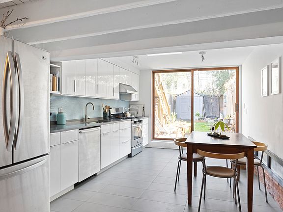 This is your chance to own a townhouse in magical South Slope. This charming three-story, two-family townhouse is move-in ready, or can be easily converted to a four-bedroom single family. The lower level of the garden duplex is an open floor plan. Upon entering, you are greeted with a cozy living room and the undeniable charm of exposed brick and beams. A spacious modern kitchen with wide glass sliding doors bring the outside in from a private patio and backyard, perfect for entertaining or sipping your morning coffee. Additionally, the garden level has a half bathroom and multiple flexible use spaces. The upper floor is configured with two bedrooms and a full bathroom. The main bedroom exits to a large private deck with stairs to the garden. The second bedroom, currently used as an office, provides plenty of character with original details like decorative moldings and a fireplace. On the top floor is a one-bedroom rental unit with a sunny front bedroom with ample closet space, an open kitchen-living space and a full bathroom.