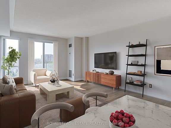 Welcome to Edgewater at the Galleria Boutique Condo Living at the Crossroads of Markham & Richmond Hill. Experience the perfect blend of comfort, convenience, and charm in this thoughtfully designed 1-bedroom, 1-bathroom condo. Ideally situated on quiet South Park Drive just steps from scenic Vanhorn Park, this home offers peaceful surroundings while keeping you close to everything: Highway 7, transit, shopping, and dining. With 694 sq. ft. of interior space (MPAC) plus a generous 80 sq. ft. balcony, the suite feels bright, open, and spacious offering a rare sense of scale in a 1-bedroom layout. The open-concept living and dining area features a breakfast bar, new vinyl flooring (2024), and modern appliances (2023). The large primary bedroom includes double closets and a private walk-out to the balcony with sweeping park views, your own outdoor retreat. Additional features include in-suite laundry, exclusive-use parking and locker, and a secure entry system. Residents also enjoy boutique-style amenities such as a fitness centre, sauna, and a tranquil, landscaped common area, perfect for unwinding or connecting with neighbors. Whether you're a professional seeking a low-maintenance lifestyle or a couple looking for a quiet retreat with easy city access, this unique suite offers the best of both worlds: community, character, and modern convenience. Dont miss the opportunity to own a spacious condo in a boutique building with timeless appeal.