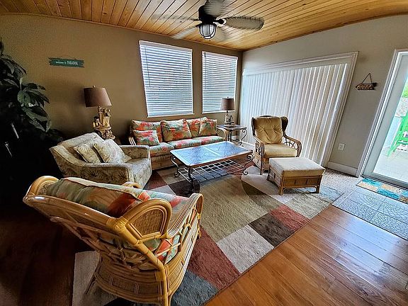 This unique multi story Cocoa Beach vacation getaway is the perfect beach rental with panoramic ocean views and unique open floor plan on upper level is real beach life. Enjoy the Ocean breeze on the multiple balconies or while you are relaxing at the pool in the brick paved courtyard. The pool, courtyard and garden area are fenced in and landscaped for privacy. Enter the fully furnished and decorated Ocean View Tower through glass door that opens upon the expansive great room of this unique vacation spot. Elegant hardwood floors and elevated wood ceilings adorn both levels of this Ocean View Tower. The large open kitchen provides both a gourmet cooking area and seating for eight at the pub table and an additioanal four at the dining table. Sofa and comfortable chairs provide easy view of the 50' television and also allows you to enjoy the natural beauty of the surroundings that this secluded dwelling has to offer. The lower level contains the queen size bedroom plus a full bath along with two sofa sleepers for four people in the great room. This level can sleep upto 6 guests. A charming spiral staircase leads to the upper level for additional sleeping quarters. On this upper level is the king size master bedroom and a full bath along with the loft living room/conversation and sleeping area. The glass doors from the loft leads out to the upper balcony where you can sit, relax and enjoy the sounds of the ocean and feel its cool breeze or you can soak up the sun for your Florida tan and at the same time take in the fabulous ocean view. The upper level can sleep four guest for a maximum accommodation of ten people in this ocean view tower. Beach access is just steps from your front door on this oceanfront property. Bring a towel and chair for a day on the beach or splash in the surf while you take a short walk on the beach to the famous Cocoa Beach Pier where you can fish, listen to music, shop, have a drink, eat at one of the restaurants or just enjoy the fun at the pier. This beautiful Ocean View Tower will be your vacation destination time and time again. Great for a family reunion, parties, family getaways, business retreats or just a great vacation spot for large families. Includes Electric up to $100, cable, internet & water