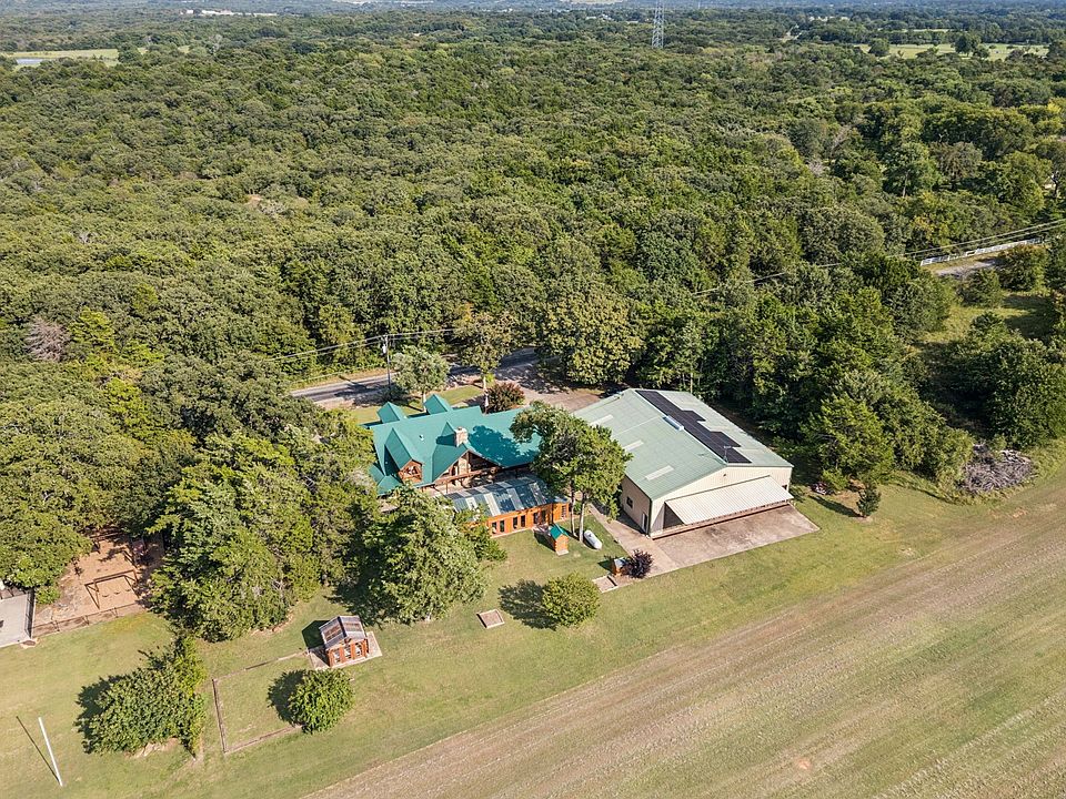 Fly home every day this is not just a house, it’s an aviator’s lifestyle. 399 Tanglewood Trail offers direct runway access at the Diamond J Private Airstrip Airport Identifier TS85 with a custom luxury log home and full hangar estate. The detached hangar measures 70' deep by 60' wide, featuring a 43' hydraulic counterbalanced door with 11.5' tail clearance, a 9,000 lb. car lift, climate-controlled office, overhead storage, and even a 1,000 sq. ft. apartment with kitchen, bath, and laundry hookups. Additional RV and travel trailer hookups with water, sewer, and 50-amp service make the property as versatile as it is rare. The main residence is crafted with spruce log construction, Brazilian Cherry wood floors, Aspen walls and ceilings, and antique claw-foot tubs. Modern upgrades in this ADA compliant home include a rare, refurbished 1863 Majestic stove converted from wood-burning to electric, a tankless propane water heater, reverse osmosis filtration, LED lighting, steel roof with insulation, and a fireplace with forced-air heat exchanger. Upstairs, a media, playroom with projection screen and surround sound, plus an additional playroom and balcony overlooking the backyard, make this home perfect for family living and entertaining. Outside, enjoy a resort-style pool enclosed in its own pool house with waterfall, dehumidifier, and Pentair equipment for year-round comfort. A greenhouse with raised growing beds, horseshoe pits, and a charming outdoor outhouse add to the character. Solar panels 47 LG panels 15.275 KW with Enphase micro-inverters service both home and hangar, delivering efficiency across the estate. From landing on the private runway to relaxing by the pool, this one-of-a-kind property delivers the ultimate aviation lifestyle without compromise.