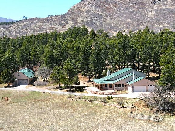Private and picturesque 57-acre mountain property located just outside the town of Beulah, CO. The main home features 3 bedrooms, 2 full bathrooms, open-concept living, with abundant windows allowing for natural light to fill the space, vaulted ceilings, and the warmth of a wood-burning fireplace in winter months. You will love the spacious kitchen with maple cabinets, granite countertops and black appliances. Enjoy peaceful mountain views from the large, covered patio. Attached oversized 3-car garage provides ample storage and workspace. A 30x60 outbuilding includes a separate 2-bedroom guest suite with a kitchenette and bath—ideal for multi-generational living, guests, or rental potential. The remaining structure has a 2 car garage door and is perfect for workshop space, equipment storage, or recreational use. The property boarders public land offering total privacy, abundant wildlife, and endless opportunities for outdoor recreation—hiking, riding, and exploring your own land and beyond. The entire property is completely fenced, including a small corral and loafing shed ready for horses and agricultural use. Private domestic well, septic, and high-speed internet available. With a paved road to the property, it is ideal for year-round living, vacation home, or mountain getaway. Don't miss this rare opportunity to own a true Colorado mountain sanctuary.