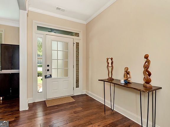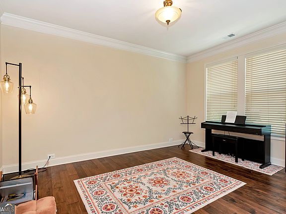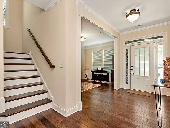 Welcome Home to Windermere! Tucked away on a peaceful cul-de-sac in one of South Forsyth's most sought-after communities, this beautifully maintained home offers the perfect blend of comfort, style, and functionality with access to resort-style amenities including a golf course, clubhouse, multiple pools, tennis courts, fitness center, and scenic walking trails. Step through the inviting entryway and you'll immediately notice the warmth of hardwood floors and the thoughtful layout designed for both everyday living and entertaining. A flex room off the foyer provides the perfect spot for a home office or playroom. The main level bedroom features a walk-in closet and a full bath with a shower/tub combo, ideal for guests or multigenerational living. The heart of the home is the chef's kitchen, complete with stained cabinetry, double ovens, a gas cooktop, walk-in pantry, and a large island with seating and a built-in sink. The open-concept living room offers a cozy stone gas fireplace flanked by custom built-ins, all overlooking the covered deck with a ceiling fan-perfect for relaxing to the sound of the nearby creek after a rain. A convenient half bath and two-car garage complete the main level. Upstairs, the thoughtful design continues with hardwood stairs leading to a spacious landing. You'll find a convenient laundry room, three secondary bedrooms - two connected by a Jack-and-Jill bath with a double vanity and shower/tub combo, and one with its own en-suite bath - along with an oversized primary suite that feels like a true retreat. The primary bedroom features abundant natural light, separate his-and-hers walk-in closets, dual vanities, a soaking tub, and a beautifully tiled shower. The finished basement offers incredible versatility with LVP flooring, a gym area, a full bath with a tiled stand-up shower, and a bedroom with walk-in closet and access to the patio. There's also a large living area/theater room complete with a kitchenette featuring a sink, induction cooktop, and space for a mini fridge, perfect for movie nights or hosting guests. Located in the heart of Windermere, this home combines elegant design, flexible living spaces, and unmatched neighborhood amenities, all just minutes from top-rated Forsyth County schools, shopping, dining, and GA-400.