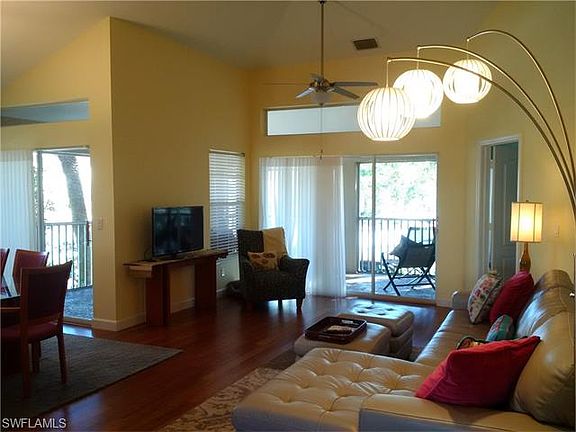 Stunning second floor end-unit. This residence is located West of US 41 in the gated community of Vanderbilt Lakes. The home boasts an open floor plan with 2 large bedrooms plus a den and 2 full baths. Volume ceilings, plant shelves and an L-shaped Lanai offers a cross breeze to fully enjoy Florida's famous 'outdoor living'. The Master Bedroom features "His" and "Hers" closets, a garden tub, walk-in shower and built-in linen closet. New Bamboo engineered flooring with premium liner throughout, new light fixtures, new baseboards, updated bathroom counters and fixtures, professionally painted, new Hunter Douglas type window treatments, with no detail overlooked. Just minutes to two of Southwest Florida's pristine Gulf Beaches, Airport, Coconut Point Mall and fine dining. Light, bright and private, a MUST see!!