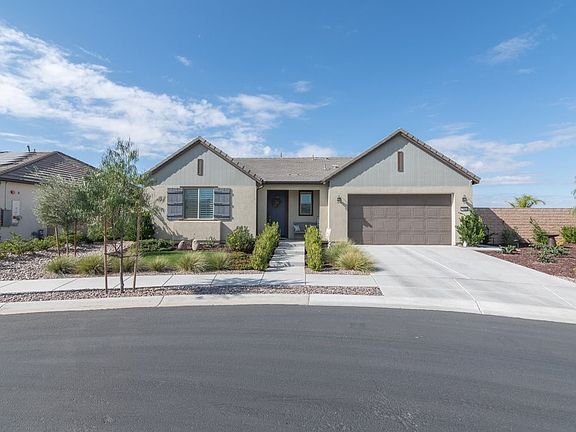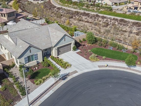 Beautiful single story 3 bedroom home in the 55+ gated community of Esplanade at Sommers Bend. Paid-off solar system and located at the end of a cul-de-sac! No immediate neighbor on the north side. View of hills/mountains. Features include a living/family room; formal dining area; and a fireplace nicely located between the living/family room and formal dining area. Kitchen features include a very large island; quartz countertops; a built-in gas stove with stainless steel top; backsplash; a built-in oven; a built-in microwave oven; a breakfast bar; a walk-in pantry; soft-close drawers; and a stainless steel dishwasher. The spacious laundry room includes a sink; cabinets; drawers; and the front loading washer & dryer are included! The spacious master bedroom includes a ceiling fan. The master bathroom includes dual sinks; quartz countertops; a large walk-in closet; and an oversized walk-in shower. Both secondary bedrooms have a ceiling fan. The hallway bathroom also has dual sinks. The home has a whole-house water softener and a tankless water heater. Other interior features include plantation shutters; recessed lighting; and gorgeous laminate flooring with a wood-like appearance. Garage features include epoxy flooring and overhead storage racks. There is even a screen door for the garage door connecting to the side yard. The front and back yards are nicely landscaped and include artificial grass; and a drip watering system. The large low-maintenance backyard also features decorative lighting; wrought iron fencing; concrete; and a California patio with recessed lighting; a ceiling fan; and a roll-up awning. There is a gas line connection located near the California patio. The two sheds in the large side yard are included. Community amenities include a hot tub; a large swimming pool; pickleball courts; table tennis; a covered patio area; a barbeque area; bocce; a garden area; and a firepit. There is also a clubhouse with a reception area; a billiards room; a gym; and two indoor gathering areas (one with a kitchen). Nearby Temecula Wine Country and a sports park. This home has a lot to offer!